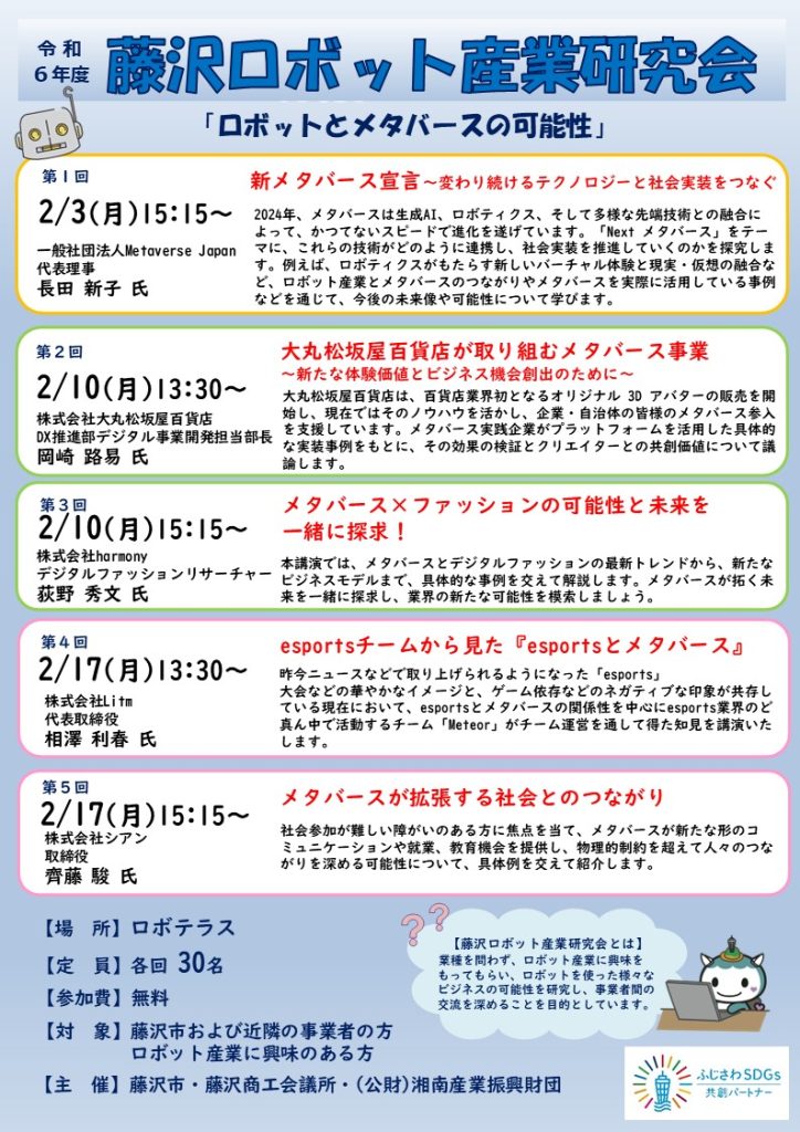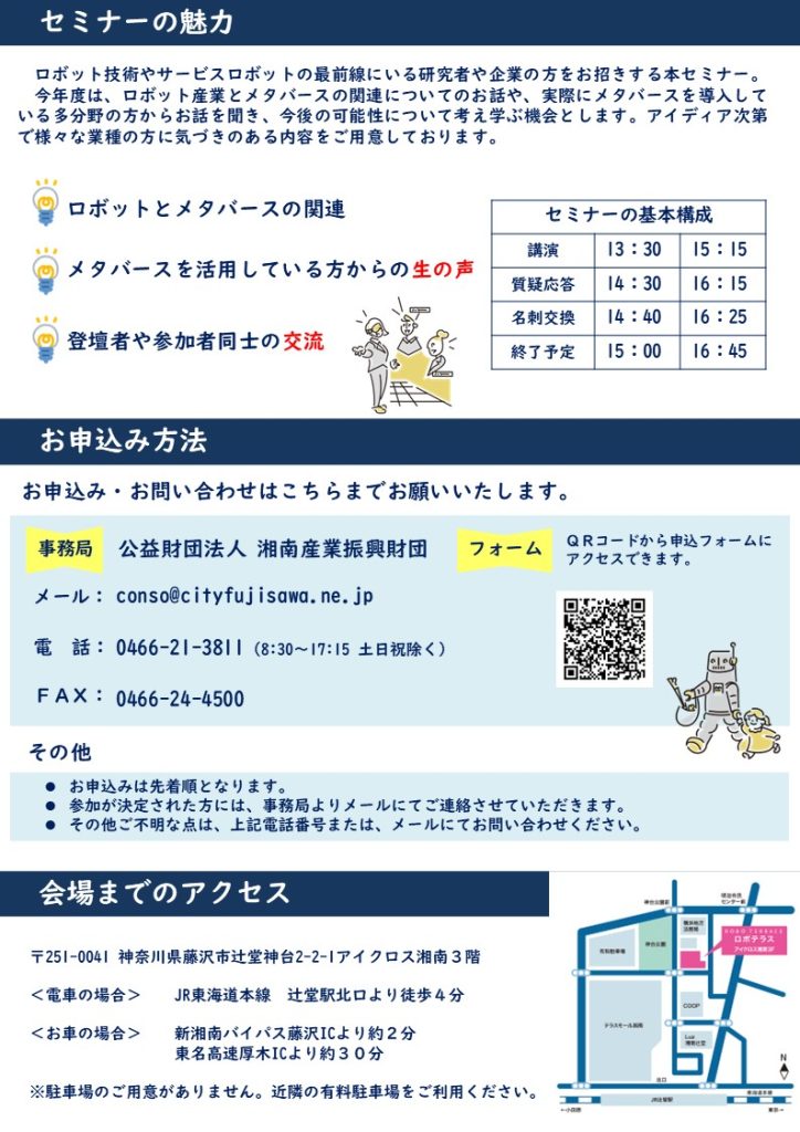 今年度のセミナーは、ロボット産業とメタバースの関連についてのお話や、実際にメタバースを導入している多分野の方からお話を伺います!