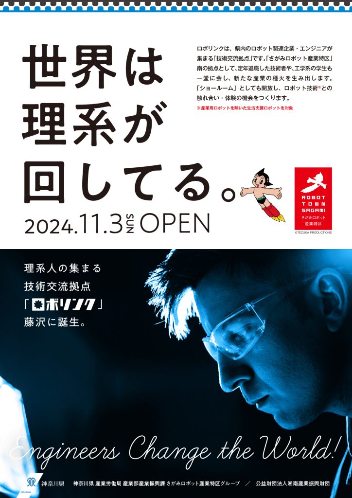 ロボリンクは、県内のロボット関連企業・エンジニアが集まる「技術交流拠点」です。「さがみロボット産業特区」南の拠点として、定年退職した技術者や工学系の学生も一堂に会し、新たな産業の種火を生み出します。また、「ショールーム」としても開放し、ロボット技術※との触れ合い・体験の機械をつくります。
