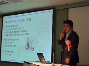 | 藤沢市・茅ヶ崎市・寒川町において活躍する中小企業等の自社事業や、新規事業プランなどを発表する「第12回 湘南ビジネスコンテスト」を11月11日(金)に開催いたしました。 事前の書類審査を勝ち抜いた5組の起業家・中小企業経営者等が、「ビジネス大賞(助成金50万円)」を目指して、公開プレゼンテーションで競い合いました。 また、前回の「ビジネス大賞」受賞者である西尾達二氏<平成23年2月に(株)E・ミニモを設立>による『受賞後の事業展開』についても、ご紹介しました。 当日は137名もの方々にご来場いただきました。 |