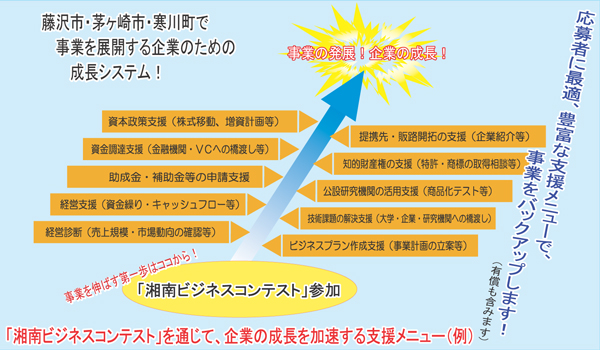 湘南ビジネスコンテストを通じて、さまざまな支援メニューをご活用ください! |