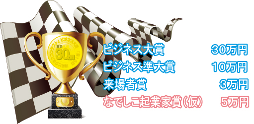 | 今回は「創業」と「新事業」がテーマ! 創業予定の個人(学生含む)、創業5年以内、新事業展開予定もしくは新事業展開後5年以内の法人、個人が対象! そして、女性起業家向けに「なでしこ起業家賞(仮)」を新設!! |